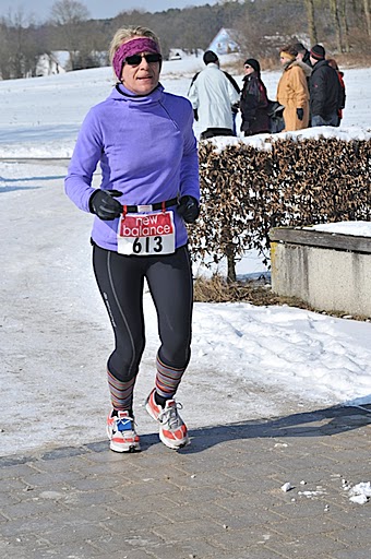 So gingen wir dann also, leicht fröstelnd an den Start. Direkt nach dem Start waren die Wegeverhältnisse gut bis sehr gut. Der Schnee war fest zusammengetreten, so dass man auch mit normalen Laufschuhen guten Vortrieb hatte. Auf die ersten 1-2Km blies aber unangenehmer Wind, der erst ab Polsdorf in den Bäumen hängen blieb.