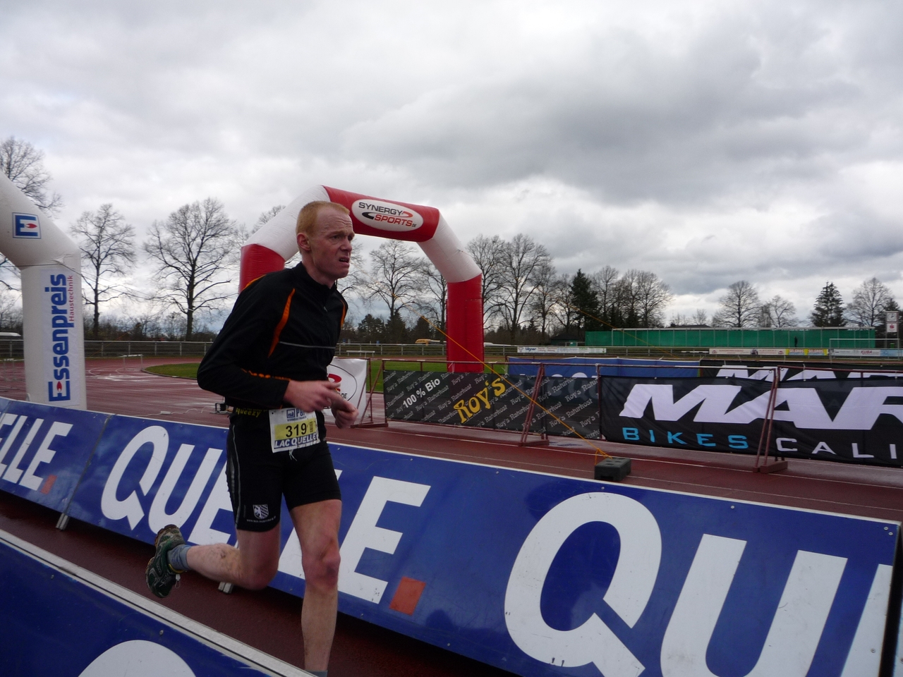 Jetzt noch über den Fussballplatz und hoch auf die Aschenbahn. Kerstin war inzwischen 300m vor mir, Jens knapp dahinter, dann kam Ralf und weitere 100m dahinter ich.