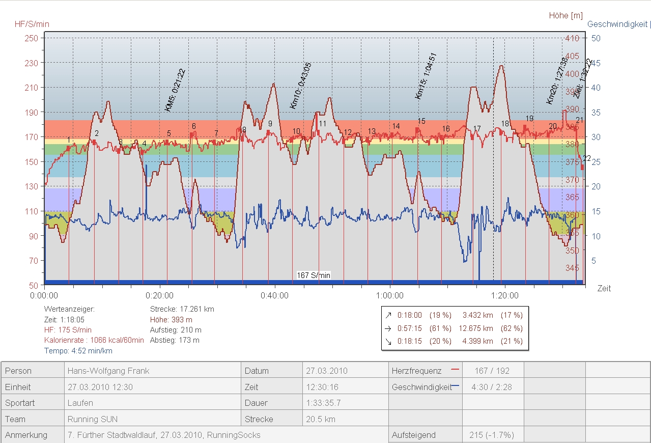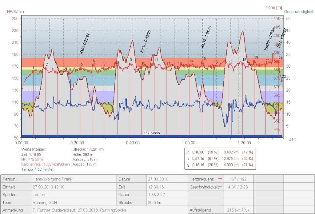 Heute war es wieder soweit. Der 7. Fürthter Stadtwaldlauf mit 21.1Km stand auf dem Programm. Im Vorjahr versuchte ich mich das erste Mal bei diesem Lauf, der hinsichtlich Streckenführung und Gelände einiges zu bieten hat. Die Strecke läuft zu fast 99,5 % über gute, breite, Forstwege, teileise aber auch über schmale Trials (wie die MTB Fahrer sagen). Gerade das Wegstück hoch zur Veste ist keine Autobahn, sondern ein ausgewaschener und buckliger Pfad, der auf grund seiner Steigung schon einiges abverlangt.