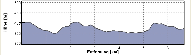 | Der Streckenverlauf | Das Höhenprofil (120m Anstiege, 150m Abstiege) |