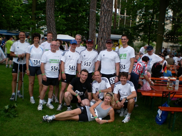Vor dem Start traf man sich im kleinen Wäldchen des Südwestparks, um schon einmal die „Renntaktik“ abszusprechen und sich gegenseitig Mut zu machen.  Für einige war es der erste Lauf in diesem Jahr, und dann gleich bei diesen Temperaturen. Einige stärketen sich schon einmal vorab mit Wasser, Apfelsoftschorle oder auch gleich mit isotonischen Hopfengetränken. Dann wurde das obligatorische Gruppenfoto aufgenommen: