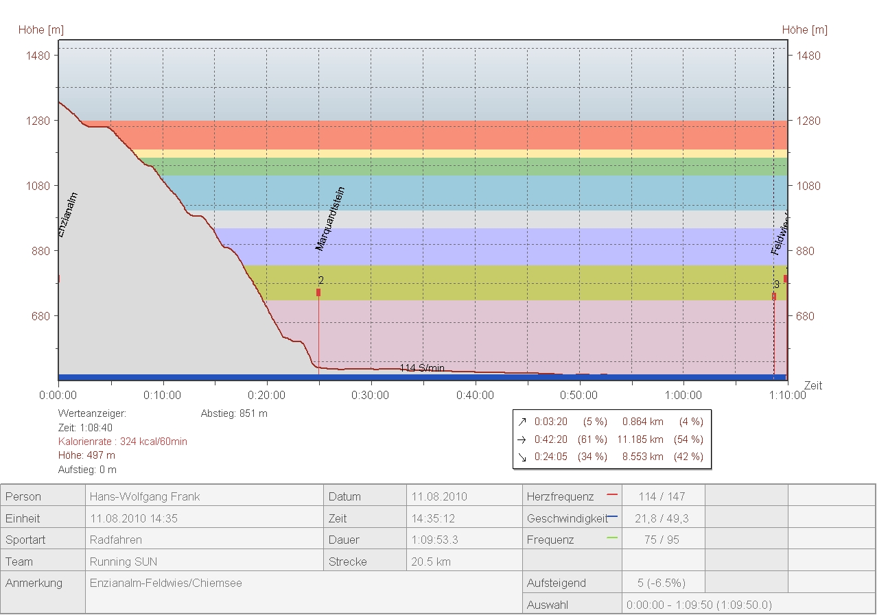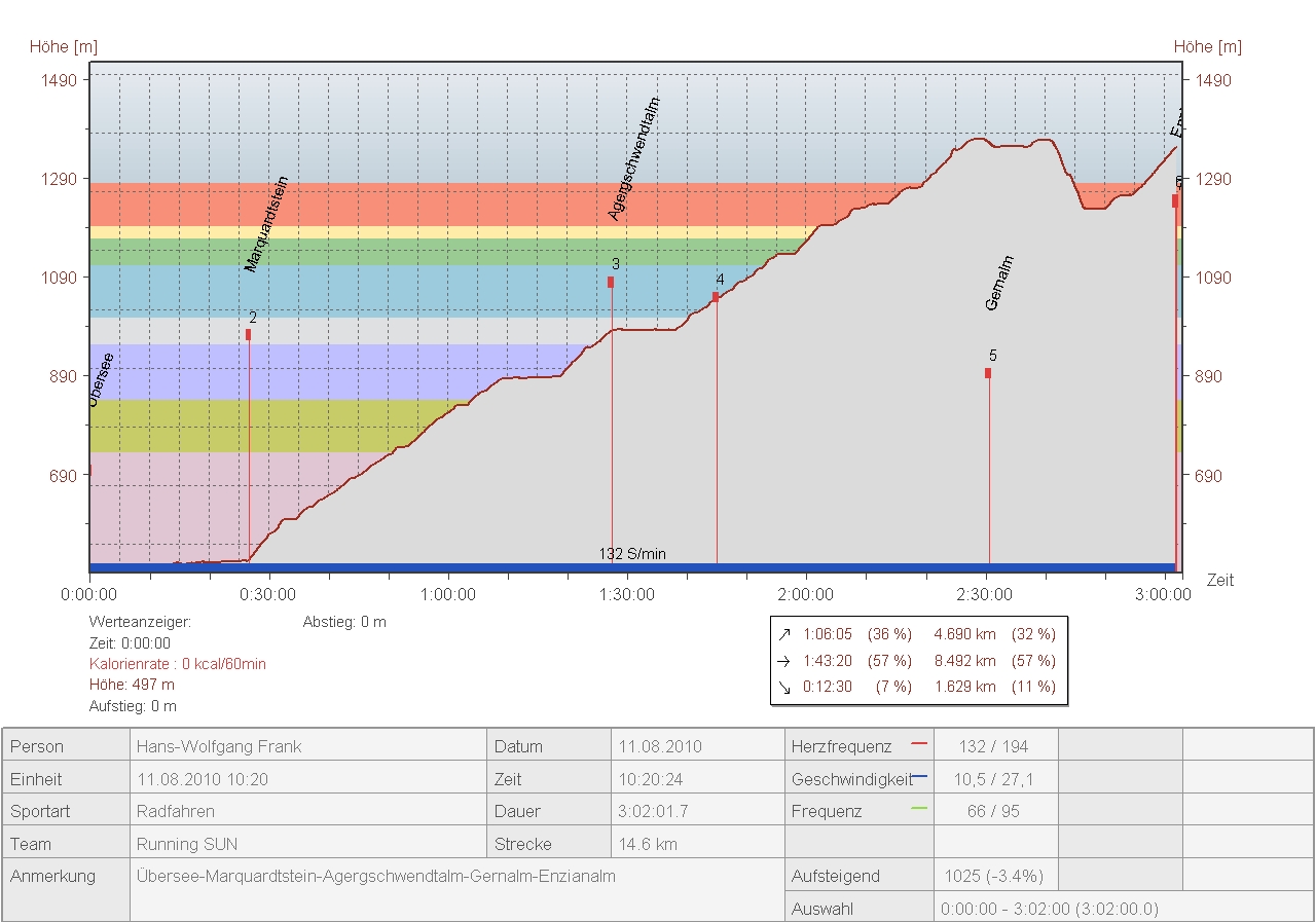 Die Temperaturen waren angenehm und lagen bei ca. 24Grad, teilweise lugte auch die Sonne hinter dem wolkigen Himmel hervor. Erika wollte sich derweil entweder beim Baden am Chiemsee, oder bei einer Schiffsfahrt vergnügen. Wir fuhren Richtung Marquardtstein los, während Erika in Richtung Feldwies zur Schiffsanlegestelle unterwegs war.
