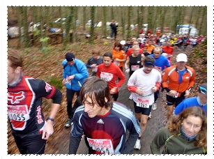 Über den Fitnesspfad geht es dann wieder Bergab. Aufpassen das niemand doch vor lauter Eifer (Endspurtphase) die Kurve nicht mehr packt oder beim aufgeweichten und mit Laub bedeckten Waldboden ausrutscht…bekanntlich soll es aber jeder zum Ziel geschafft haben.