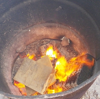 Um eine rauchende und feuerspeiende Tonne versammelten sich die bunten Gestalten und ergingen sich in leisen und geheimen, manchmal auch laut lachenden Gesprächen. Es musste sich um so etwas wie das Walpurgisnacht Treffen handeln. Allerdings gab es keine wallenden Gewänder, sondern nur Gestalten in weiten Obergewändern und enganliegenden (blickdichten) Strumpfhosen. Das Schuhwerk war eher für den Sommer geeignet, während die Hand- und Kopfbedeckung der Witterung angepasst war. Immer wieder wurde mit Händen und Füßen der Feuergott in der Tonne beschworen; manche hüpften wie in Trance vor der Tonne auf und ab.