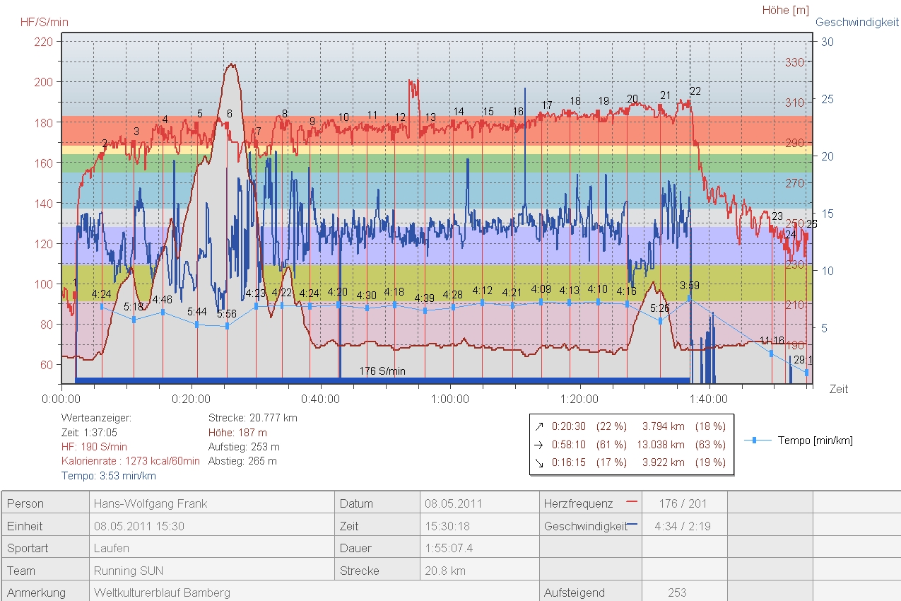 Durchschnitts-Geschwindigkeit 13,0 km/h