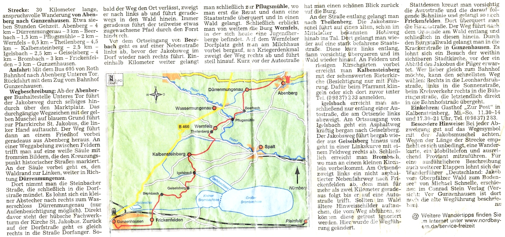 Am 22.08.2011 unternahmen wir eine Wanderung auf dem Jakobsweg. Wir begingen den fränkischen Teil von Abenberg nach Gunzenhausen. Die Wanderung ist auf Grund ihrer Länge von ca. 30Km und recht anspruchsvoll und dauert ca. 7 – 8 Std.
