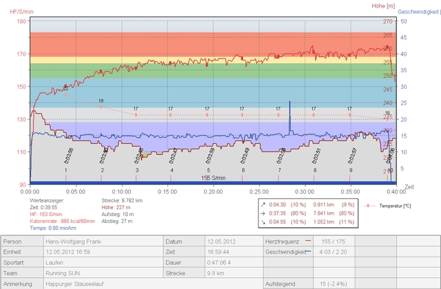 | Durchschnitts-Herzfrequenz | 155 | S/min |