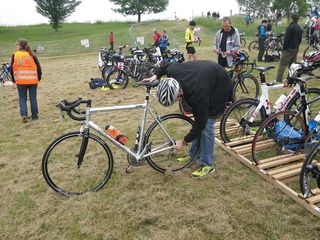 Anschließend besorgten wir uns erstmal die Startunterlagen im „Movin Ground“. Dabei wurde sogleich die Umgebung (Start, Zielbereich, Wechselzone, Laufwege) inspiziert. Nach dem Einchecken des Rades