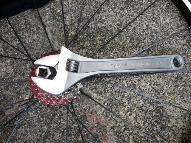 - So geht’s.. Mit Spezial Vielzahnnuss und einem ordentlichen Maulschlüssel wird das Ritzelpaket auf dem Freilauf befestigt.