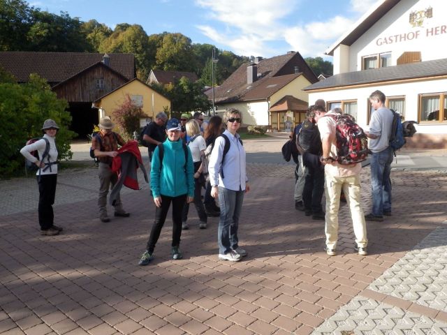 Leider hatte die erste Station der Bierwanderung, Brauerei Herold in Büchenbach, noch Betriebsurlaub. Somit mussten wir mit trockenem Hals auf die erste Etappe nach Leups wandern. Der Schmerz darüber halt sich aber in Grenzen, da diese Etappe nur knapp 3,2Km lang ist. Bei bestem Wetter und fast strahlend blauem Himmel geht es los.