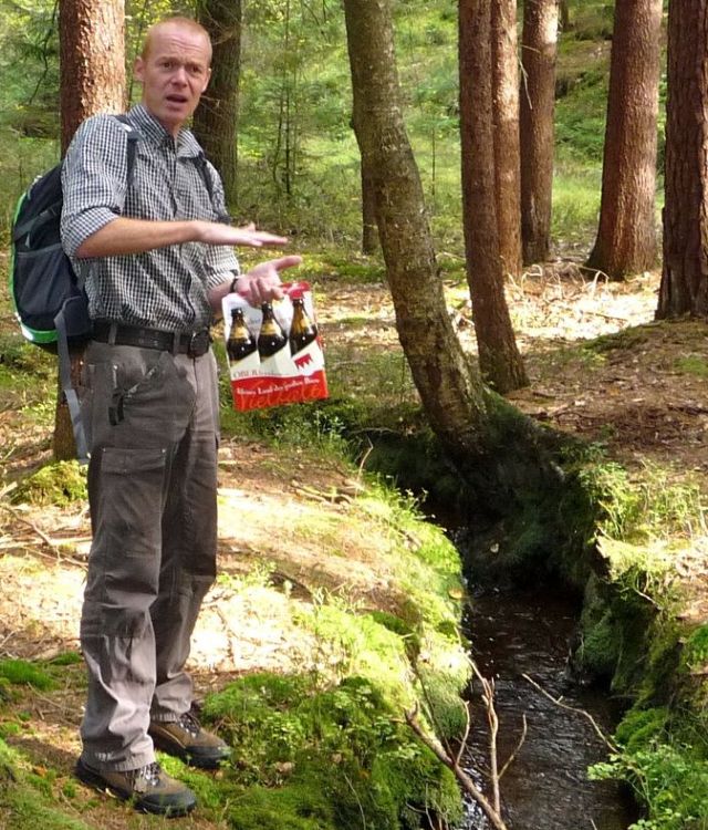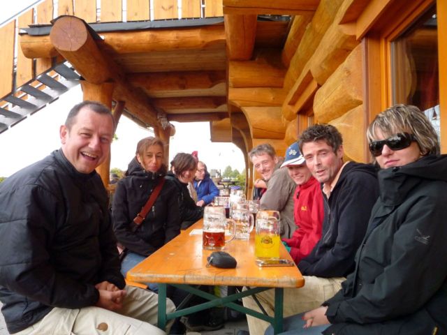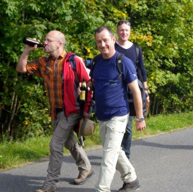 Gut hydriert machen wir uns nun auf die Königsetappe. Aber halt !!! Wir fragen in der Gaststube, ob es nicht auch Flaschenbier zum mitnehmen gäbe. Und tatsächlich holt uns der Gastwirt aus seinem Lager etliche Fläschen und verpackt dies in ein Tragerl. Jetzt kann es los gehen !!
