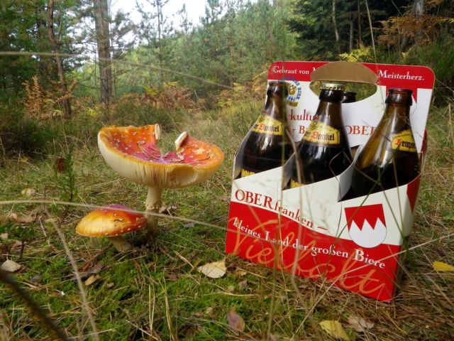 Von Leups über Trockau nach Weiglathal folgt der längste Teilabschnitt mit ca. 6, 5km. Die Sonne scheint noch immer, der Weg führt nun über eine Staatsstraße fast eben nach Trockau. Dort unter der großen Autobahn Talbrücke hindurch, über den Marktplatz, durch den Ort und hindurch, der Weg ist ja auf Grund der ausgezeichneten Markierung nicht zu verfehlen. Noch einmal queren wir eine Straße, dann geht es wieder in den Wald hinein. Luisa entpuppt sich inzwischen als wahre Pilze- und Kräuterfee. Jede Beere, der jeder Busch, jedes Myzel wird genau untersucht und bald sind auch wir die besten Pilzekenner 🙂
