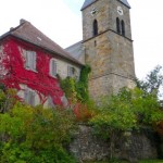 Die nächste Etappe von Weiglathal nach Lindenhardt ist wieder sehr überschaubar. Knapp 3Km sind zu bewältigen, bis wir bei der Brauerei Kürzdörfer unsere wohlverdiente Brotzeit einlegen wollen. Auf sehr guten Schotterwegen geht es immer leicht bergab, an den „Sieben Brünnlein“ vorbei. Nun folgt ein kurzes Stück über ein grasbewachsenen Pfad bevor wir auf einer Anhöhe aus dem Wald heraustreten und vor uns schon Lindenhardt sehen. Der markante Kirchturm ist schon von weitem sichtbar und berühmt. Die St. Michaels Kirche wurde bereits um 1130 zum ersten Mal erbaut und von Bischof Otto von Bamberg zu Ehren der heiligen Jungfrau Maria eingeweiht. Wir halten uns zweimal links und sehen nun auch schon die Blockhaus Gaststätte der Brauerei Kürzdörfer.