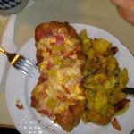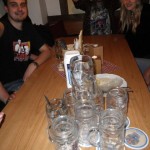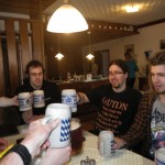 Auf grund der kühlen Witterung war das überragende Platzangebot auch kein Wunder. Auch wir verschmähten die nassen Bierbänke und bogen schnurstracks in das Rittmayer Kellerhaus ab. Dort erwartete uns ein leerer Stammtisch mit gut geheiztem Kachelofen. Christoph genehmigte sich wieder mal ein Schnitzel (oder waren es nur Pommes??), ich begnügte mich mit einem fetten Stück Bienenstich. Das Gasthaus füllte sich derweil immer mehr, die Temperaturen stiegen, das Bier neigte sich dem Ende zu … ein untrügliches Zeichen also: „ZAHLEN BITTE“ und Aufbruch zum nächsten Etappenziel: Brauerei Roppelt !!