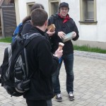Zurück zum Bahnhof, durch den Stadtteil Altendorf, folgten wird der Wegbeschreibung nach Seußling. Anfangs noch auf einem Fahrweg, der später in einen Feldweg überging. Ohne weitere Beschilderung ging es bald weglos durchs Gestrüpp – erste zweifelnde Stimmen drangen aus dem Hintergrund. Bei einer Wegbierpause und wurden diverse Smartphones mit Googlemaps gezückt und nach einige Minuten war unser Standpunkt auch geklärt. Weiter gings, bis wir wieder einen festen Weg erreichten und Großbuchfeld in Sicht kam. Beim Gasthaus Weber war nun die Mittagspause und etwas deftiges zum Essen angesagt. Bei einem Seidla Löwenbräu und diversen Schnitzel sowie Sauerbraten wurden die Akkus wieder aufgeladen.