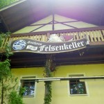 Aus dem Kamin des Gasthauses raucht es, also ist jemand zuhause. Von außen betrachtet könnte ein Besen dem Haus wieder etwas mehr Glanz verleihen – es hängen doch schon sehr viele Spinn- udn Staubweben an der Hauswand. Innen sieht es aus wie in einer Berghütte der 60er Jahre (vielleicht auch 70er). Rustikal und einfach. Wahrscheinlich hat der Wirt nicht mehr mit Gästen gerechnet, denn er sitzt im dunklen Gastraum und isst. Den Holzofen hat er wohl auch est vor 15Min angeschürt, es ist spürbar kühl. Nachem wir zu sechst, und kurz drauf eine große Gruppe mit 10 Personen sowie 4 weitere Wanderer einfallen, kommt Leben in die Stube. Wir erlauben uns ein paar Scheite Holz aufzulegen und laben uns derweil am extrem süffigen Kellerbier. Nach ca. 20Min treffen Koch und Köchin ein, die mit Säcken und Kisten bepackt sosofrt in dr Küche verschwinden, um die BEstellungen zu richten – mit anderen Worten: es wird alles frisch gemacht.