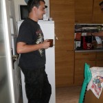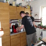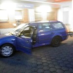 Gegen 15:30h trifft Axel bei uns ein. Wir laden seinen Krempel n den Hänger ein und warten nun auf Peter.  Der kann erst um 16:30 Feierabend machen. Gegen 17:10 starten wir. Allerdings müssen wir über Hirschaid fahrern, da Axel seine Karte bei Marco abholen und muss und noch zwei weitere Karten in Wacken verkaufen soll.