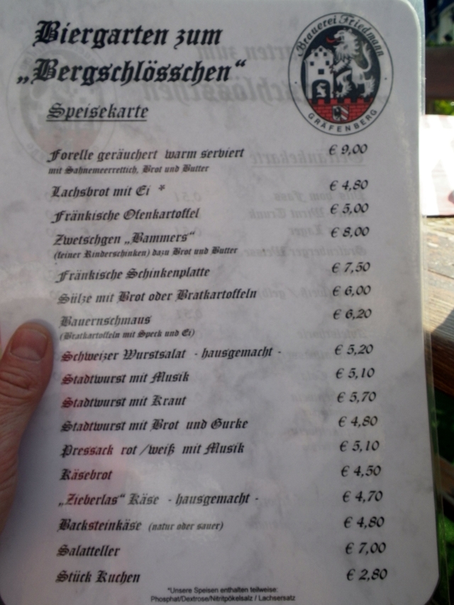 20130830_Graefenberg_0008 Views: 0Die Speisekarte, Bier kostet 2,00 EUR bzw. 2,20 EUR Previous Image Next Image Leave a Reply Cancel reply Dein Kommentar You may use these HTML tags and attributes: <a href="" title=""> <abbr title=""> <acronym title=""> <b> <blockquote cite=""> <cite> <code> <del datetime=""> <em> <i> <q cite=""> <s> <strike> <strong> Name (notwendig) E-mail (notwendig) URI Bitte gib eine Antwort in Ziffern ein:19 − 4 = Benachrichtige mich über nachfolgende Kommentare per E-Mail