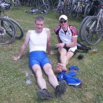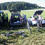 Auch die weiteren 26Km waren ein stetiges Auf und Ab, allerdings frage ich mich schon, wie es so viele Wege und Pfade mit Wurzeln geben kann. Nach der letzten Abfahrt bei Km49/50 war ich richtig froh, wieder Schotterwege und geteerte Straßen zu sehen. Die Unterarme schmerzten, die Handballen teilweise taub, es war schon ein heftiges Gerüttel ( lag vielleicht auch ein bischen an meiner defekten Federgabel). Nach 3:31 erreichten Stefan und ich dann wieder Lupburg und das Ziel, wo uns überraschenderweise schon Albert mit einem Grinsen begrüßte.