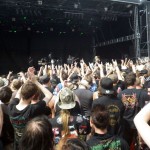 Die technische Ausrüstung arbeitet, trotz Schatten bzw. Anhänger, am Rande des Limits oder darüber. Die Boxenrückseite (Aktivboxen ) glüt und kann fast nicht mehr angefasst werden. Ebenso Mischpult oder Laptop (feuchter Lappen sorgt für sekündliche Kühlung). Das Aggregat ist bisher sein Geld wert und läuft ca.< 17-18 Std. ununterbrochen. Da wir direkt am Rande einer Schotterzufahrt campieren haben wir Staub ohne Ende: Auf dem Mischpult, Laptop, Bidlschirm Aggregat….). in ca. 2,5h spielt Black Stone Cherry auf der Hauptbühne. Das wird mein persönlicher Knaller !!!