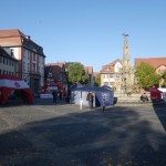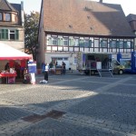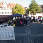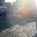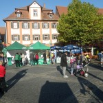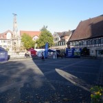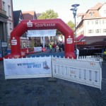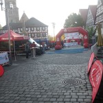 Der Tag begann sehr frisch aber wolkig. Gegen 8:30 machte ich mich auf den Weg nach Schwabach zum Ribe Citylauf. Unterwegs lösten sich die letzten Wolken auf und vom stahlblauen Himmel strahlte einem die Sonne entgegen. Fantastisch ! Als ich dann kurz nach 09:00 meine Startnummer abholte waren einige noch dabei ihre Stände aufzubauen, und nur wenige Läufer auf dem Marktplatz zu sehen: die meisten suchten die sonnigen Plätze um sich aufzuwärmen.