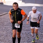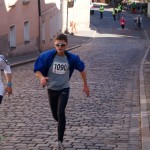 Nach der ersten Verpflegungsstelle am Ende einer Steigung mussten aber beide etwas abreißen lassen, ich durfte mir nun neue „Zugpferde“ suchen. Das Läuferfeld war zwar ziemlich auseinander gezogen, aber es fanden sich in Reichweite immer Läufer, die zur Orientierung und heranarbeiten dienen konnten. Nach der letzten Verpflegungsstation bei Km 17,3 spürte ich so schon sehr heftig meinen Trainingsrückstand. Der linke, hintere Oberschenkelmuskel (Hamstring) fing an sich schmerzhaft zu melden. Da blieb nichts weiter übrig, als das Tempo zu drosseln, was aber auch wegen inzwischen auf über 180 angestiegenen HF absolut notwendig war. Vor dem Zielbogen war noch ein letzter, knackiger Anstieg zu bewältigen, dann konnte man die letzten 100m Zielenlauf auf den Marktplatz genießen. Ziemlich ausgepumpt erreichte ich noch knapp unter 1:36h das Ziel – bassd scho !!