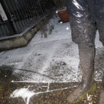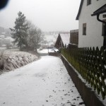 Der morgen und vormittag noch grau und wolkenverhangen, beim LunchRun dann schon fies kalt und und windig. Für den Nachmittag und Abend waren Anfangs Regen, später Schnee bis in tiefe Lagen angekündigt. Und tatsächlich zuckerte ab dem frühen Nachmittag leichter Schneefall die umliegenden Häuser und Wiesen.